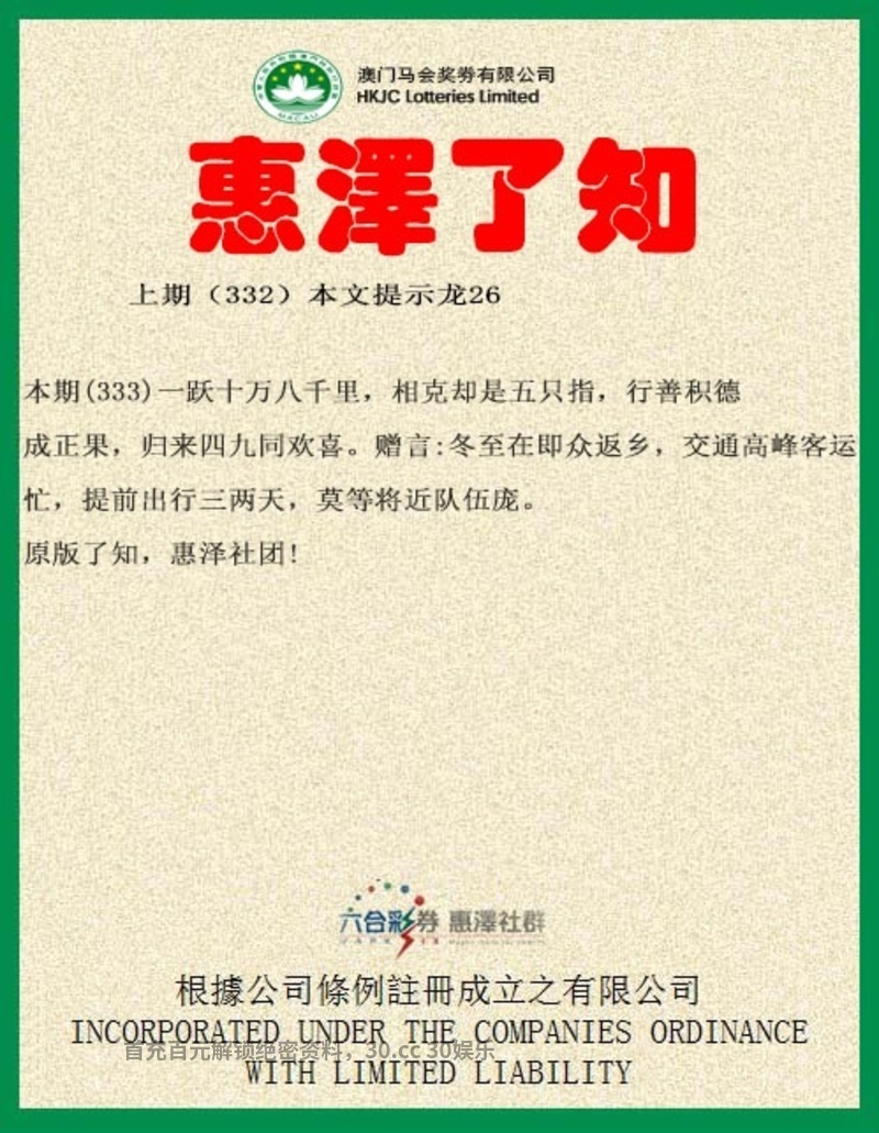 | [惠泽了知] 333期:一跃十万八千里,解18鼠。相克却是五只指,解05牛。行善积德成正果,归来四九同欢喜。解吉肖兔龙蛇马羊鸡。赠言:冬至在即众返乡,交通高峰客运忙,提前出行三两天,莫等将近队伍庞。 [惠泽九肖]:鼠牛龙鸡兔蛇马羊猴 [惠泽六肖]:鼠牛龙鸡兔蛇 [惠泽三肖]:鼠牛龙 [惠泽一肖]:鼠 [惠泽平肖]:鼠鼠鼠 |
