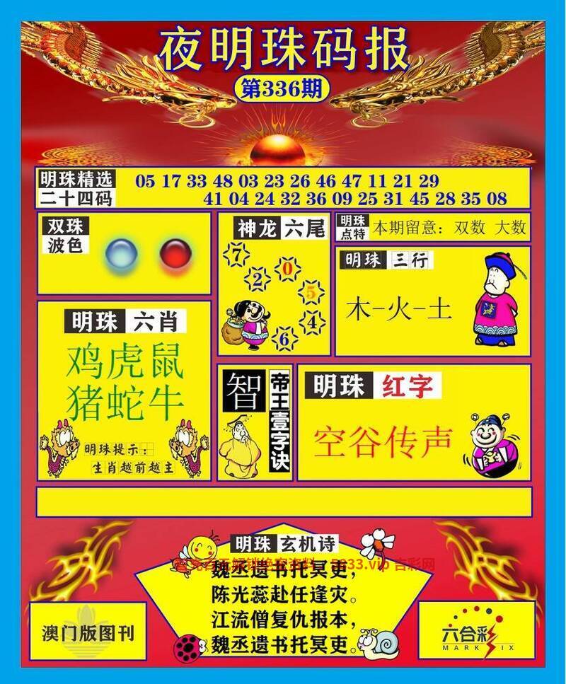 | 337期:玄机诗 特尾应取一三五,特码出在绿头上。绿红还要选特码,特尾应取一三五。 精选六肖:羊猴鼠鸡猪虎 |